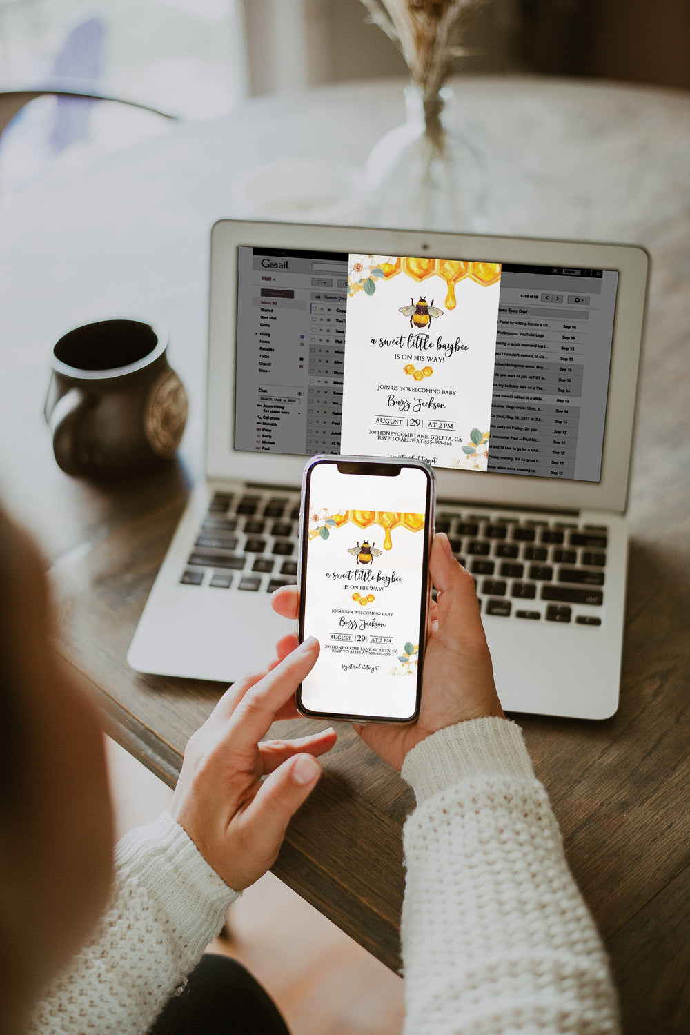 Bee Themed Baby Shower Invitation - Honey Themed Baby Shower - Yellow and Brown Baby Shower Invitation - Honeycomb Baby Shower Invitation - Honey Pot Baby Shower Invitation - 100% Editable Template