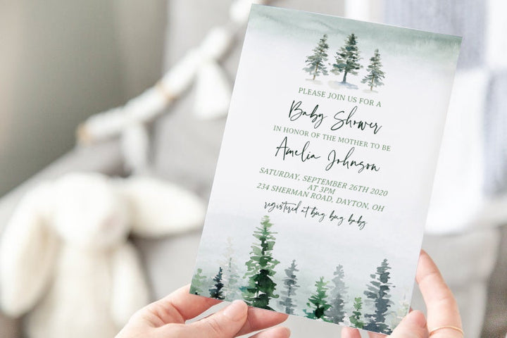 Forest Baby Shower Invitation - Green Forest Baby Shower Invitation - Wood Theme Baby Shower Invitation - Forest Woodland Baby Shower Invite