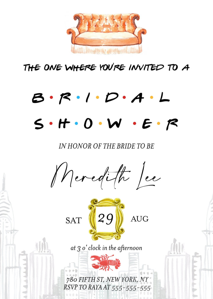 Friends Theme Bridal Shower Invitation - Central Perk Bridal Shower Invitation - NYC Bridal Shower Invitation - He's Her Lobster Invitation