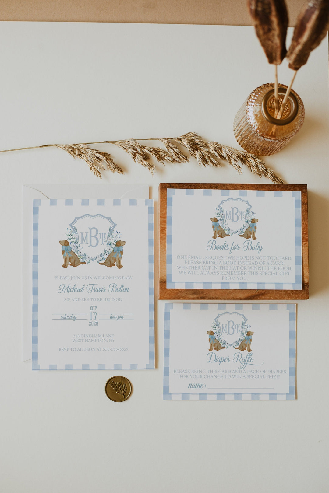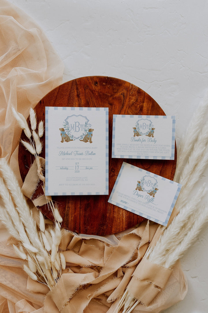 Baby Boy Preppy Gingham Invitation - Baby Shower Crest Invitation - Gingham Baby Shower Invitation - Editable Preppy Baby Shower Invitation - 100% Editable Template
