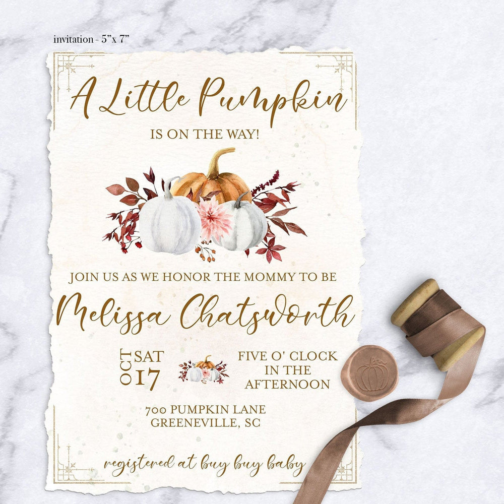 Little Pumpkin Baby Shower Invitation - November Baby Shower Invitation - Fall Pumpkin Baby Shower Invitation - Floral Pumpkin Invitation