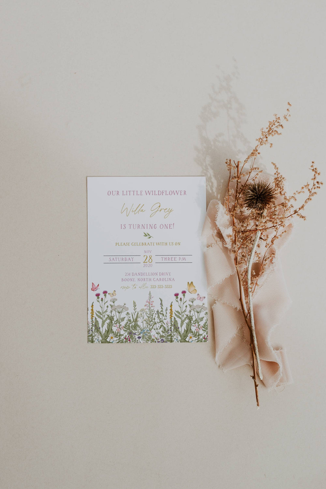 Wildflower Birthday Invitation - Our Little Wildflower Party Invitation - Wildflower Garden Birthday Invitation - Butterfly Wildflower Card