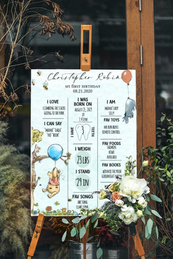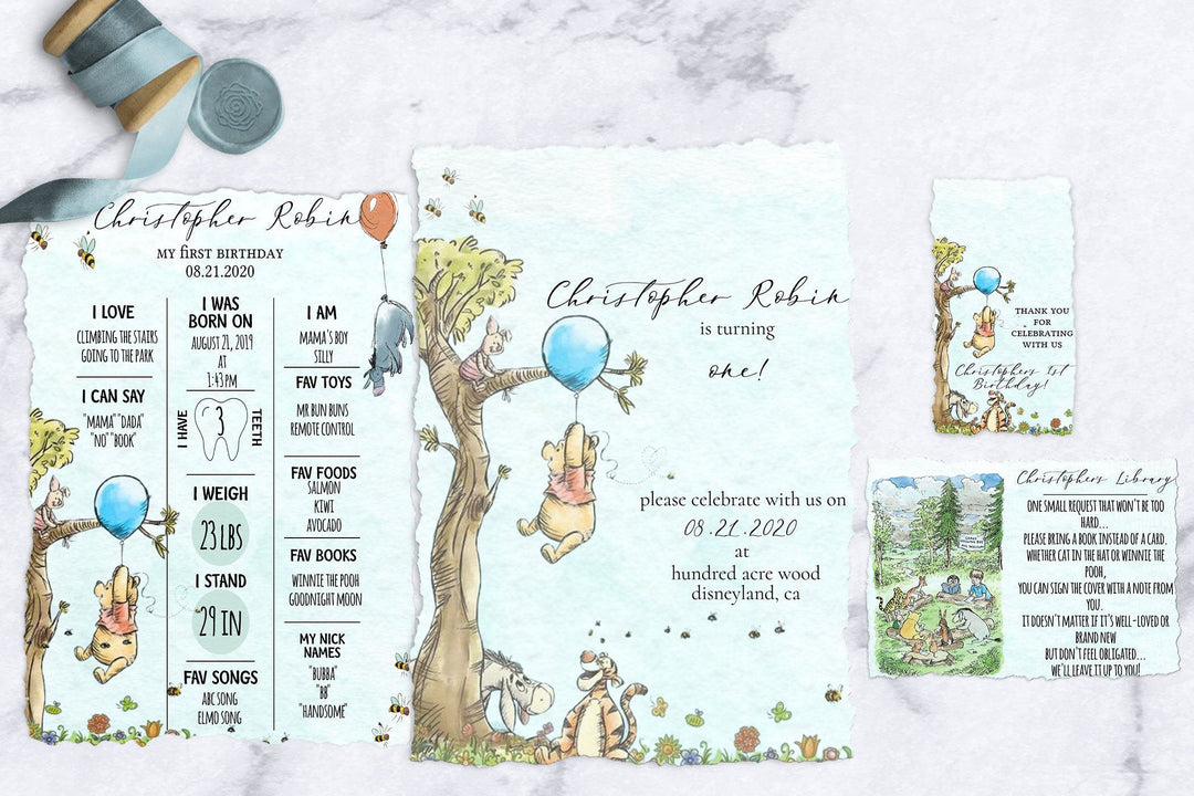 Winnie the Pooh 1st Birthday Invitation - Winnie the Pooh Template Set - Winnie the Pooh Theme - Milestone Chart - Boy 1st Bday Pooh Themed