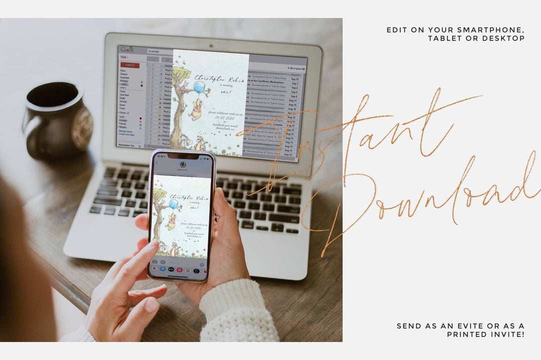 Winnie the Pooh Bundle Pack! - Winnie the Pooh First Birthday Invitation - Winnie the Pooh Theme Birthday - Boy Birthday Invitation - Birthday Invite - 100% Editable Template