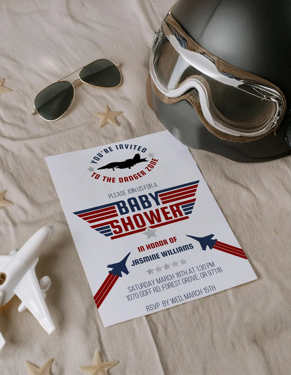 Fighter Pilot Baby Shower Invitation - Fighter Jet Baby Shower Invite - Aviation Baby Shower Invitation - Military Aircraft Invitation