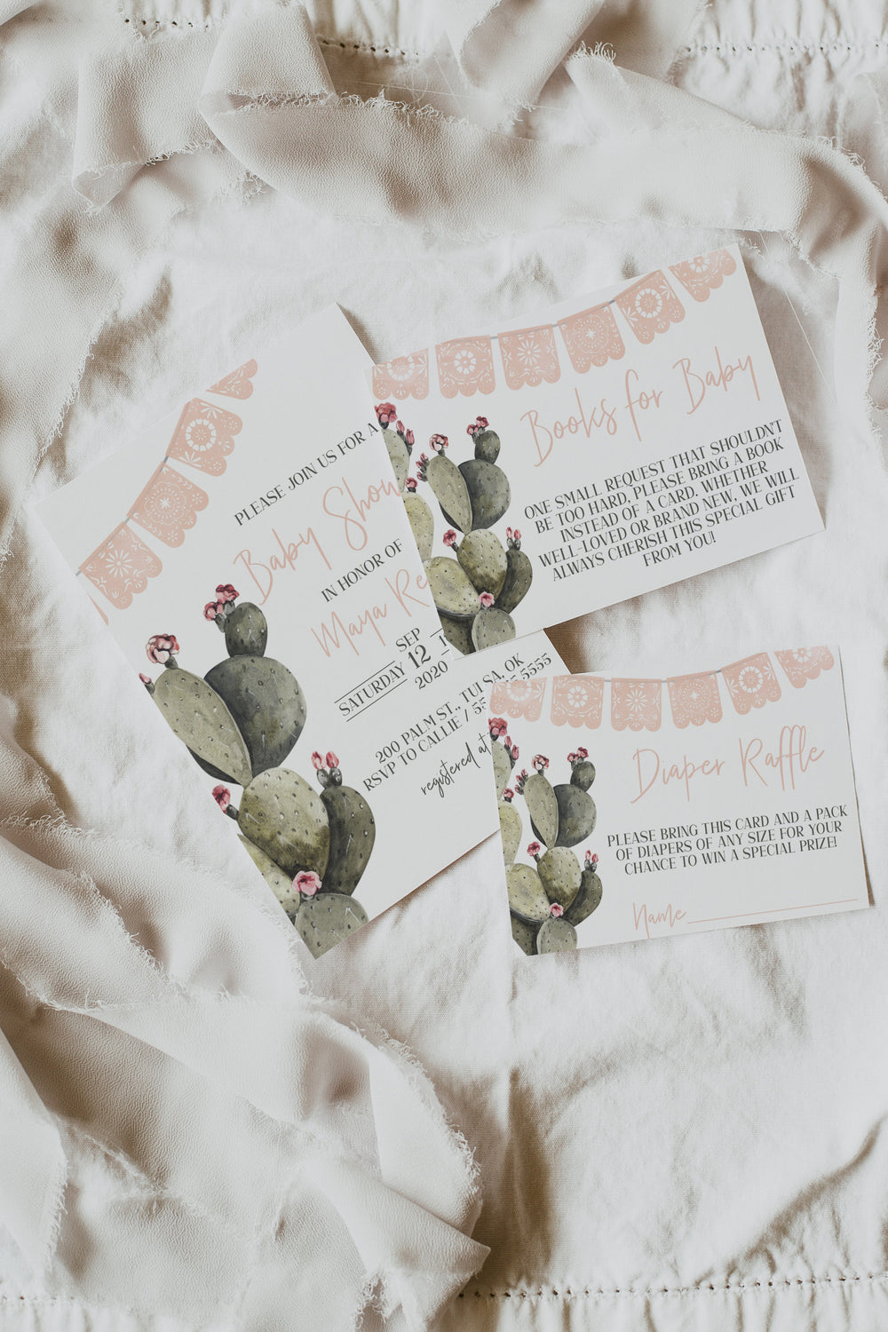 Pink Fiesta Baby Shower Invitation - Cactus Baby Shower Invitation - Baby Girl Fiesta Invitation - Taco Man Baby Shower Invitation - Cactus