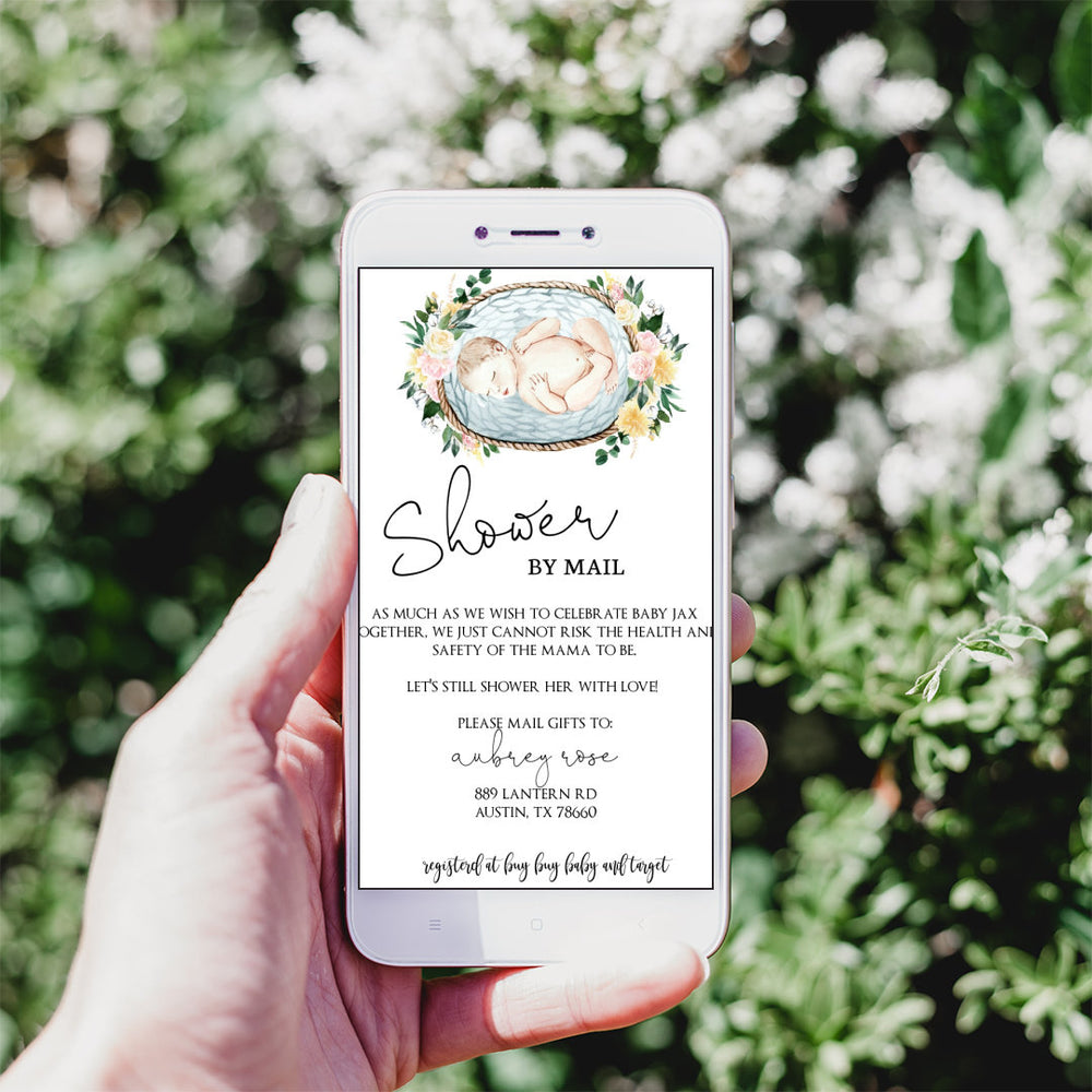 Boy Baby Shower Invitation - Shower by Mail Invitation - Social Distancing Baby Shower Invitation - Simple Theme Baby Shower Invitation - 100% Editable Template