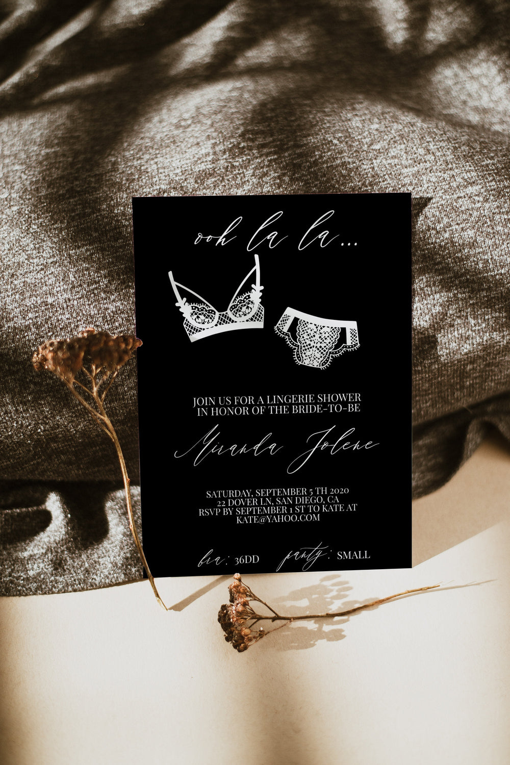 Black and White Bachelorette Party Invitation - Bachelorette Lingerie Party - Lingerie Shower Invitations - 100% Editable Template