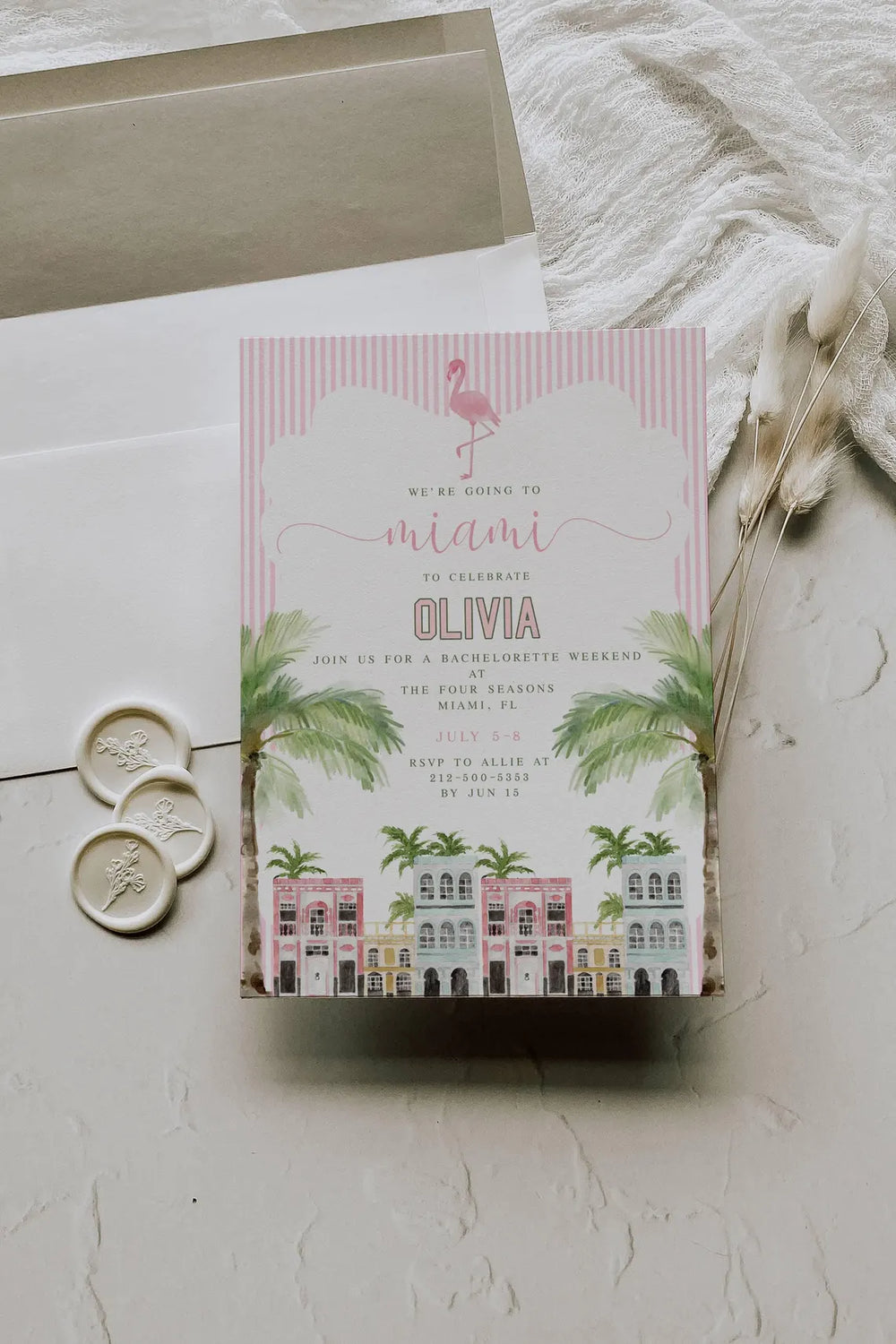 Pink Miami Bachelorette Invitation - Miami Girls Weekend Invitation - Retro Miami Girls Weekend Invitation - Miami Bachelorette Invite Evite