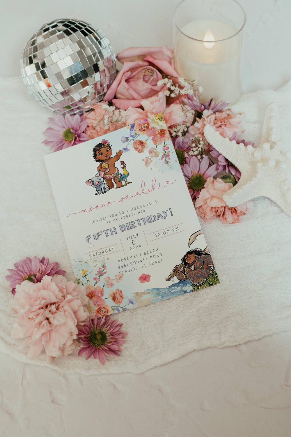 Moana Birthday Invitation - Editable Moana Invitation - Floral Moana Invitation - Moana Luau Invitation - Moana Birthday Evite - Moana 2