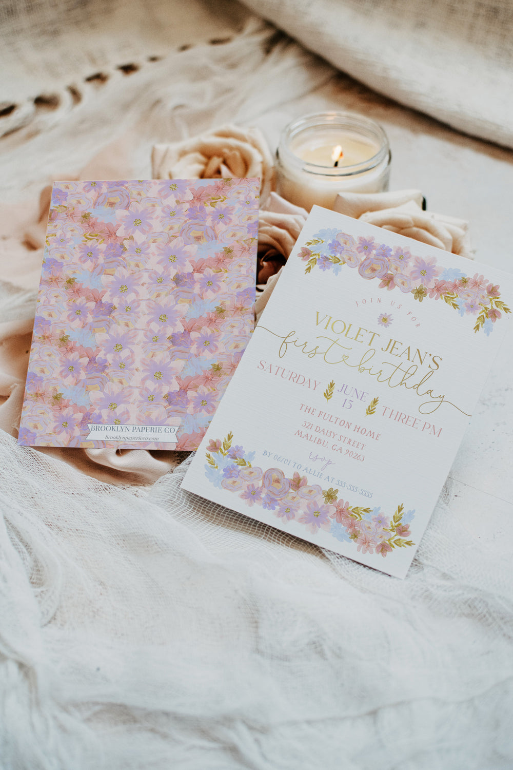Pastel Floral Birthday Invitation - Glitter Floral Birthday Invitation - Girls Floral Birthday Invite - Pastel Floral Birthday Theme Invite - Girly Birthday Invitation