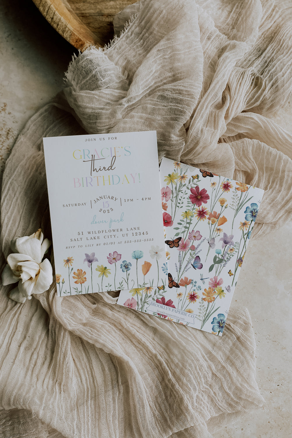 Wildflower Birthday Invitation Template - Floral Birthday Invite - Boho Floral Invitation - Wildflower Template - Birthday Invitation