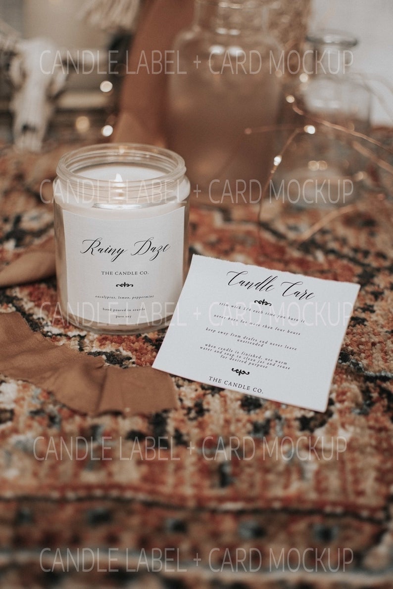 Candle Label Mockup - Candle Care Card Mockup - Boho Candle Mockup - Candle Stock Photography - Candle Product Photography - Smart Object