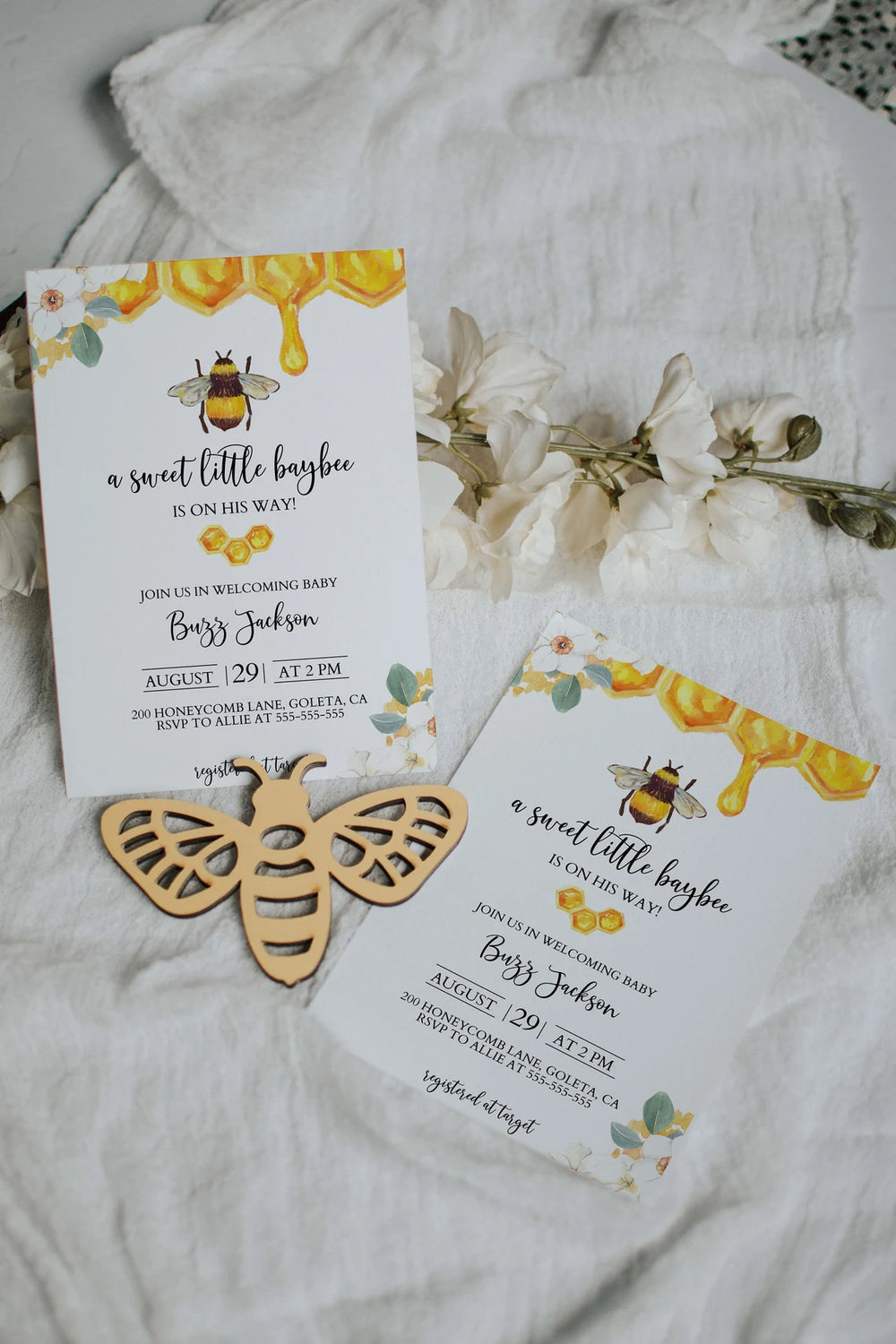 Bee Themed Mockup - Baby Shower Invitation Mockup - Boho Invitation Mockup - 5x7 Mockup - Invitation Flatlay - Stationery Mockup - 5x7 Invit