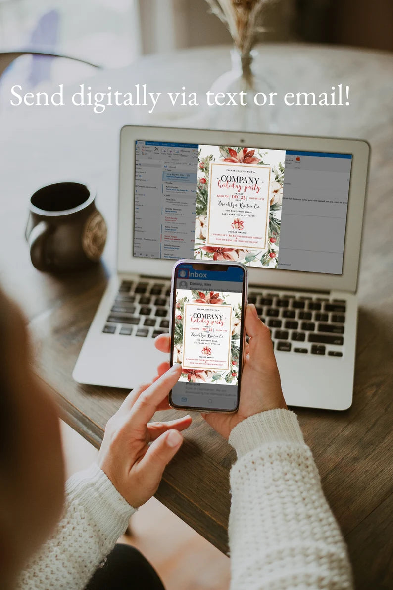 Company Christmas Invitation - Corporate Christmas Party Invitation - Christmas Party Invitation - Floral Christmas Invitation - 100% Editable Template