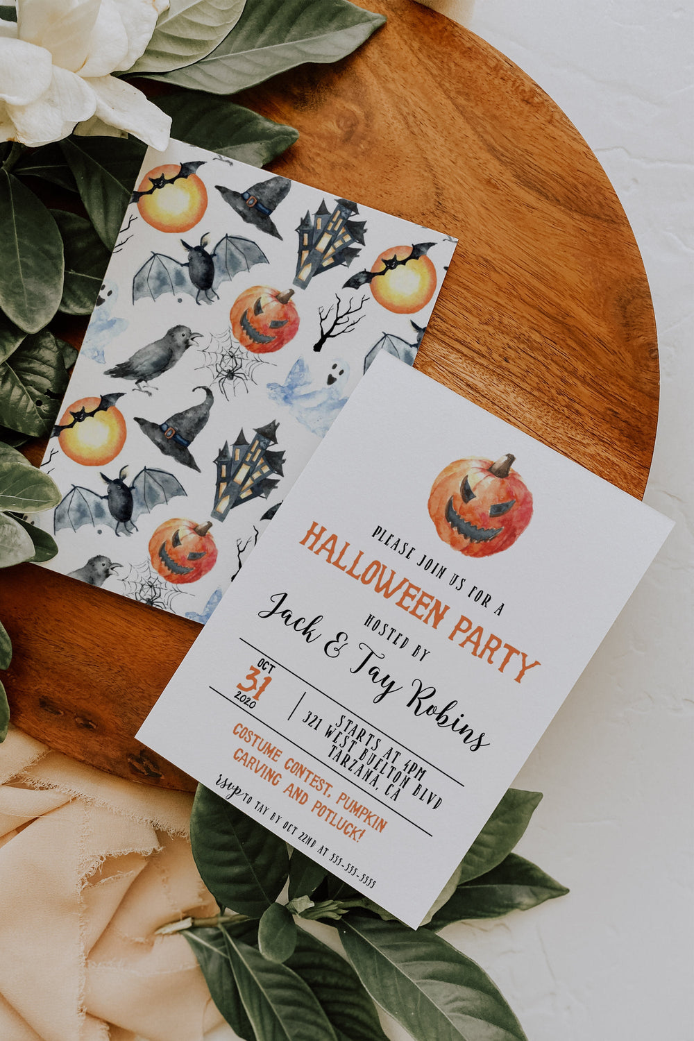 Double Sided Halloween Party Invitation - Pumpkin Halloween Party Invitation - Simple Halloween Party Invitation - COVID Halloween Invite