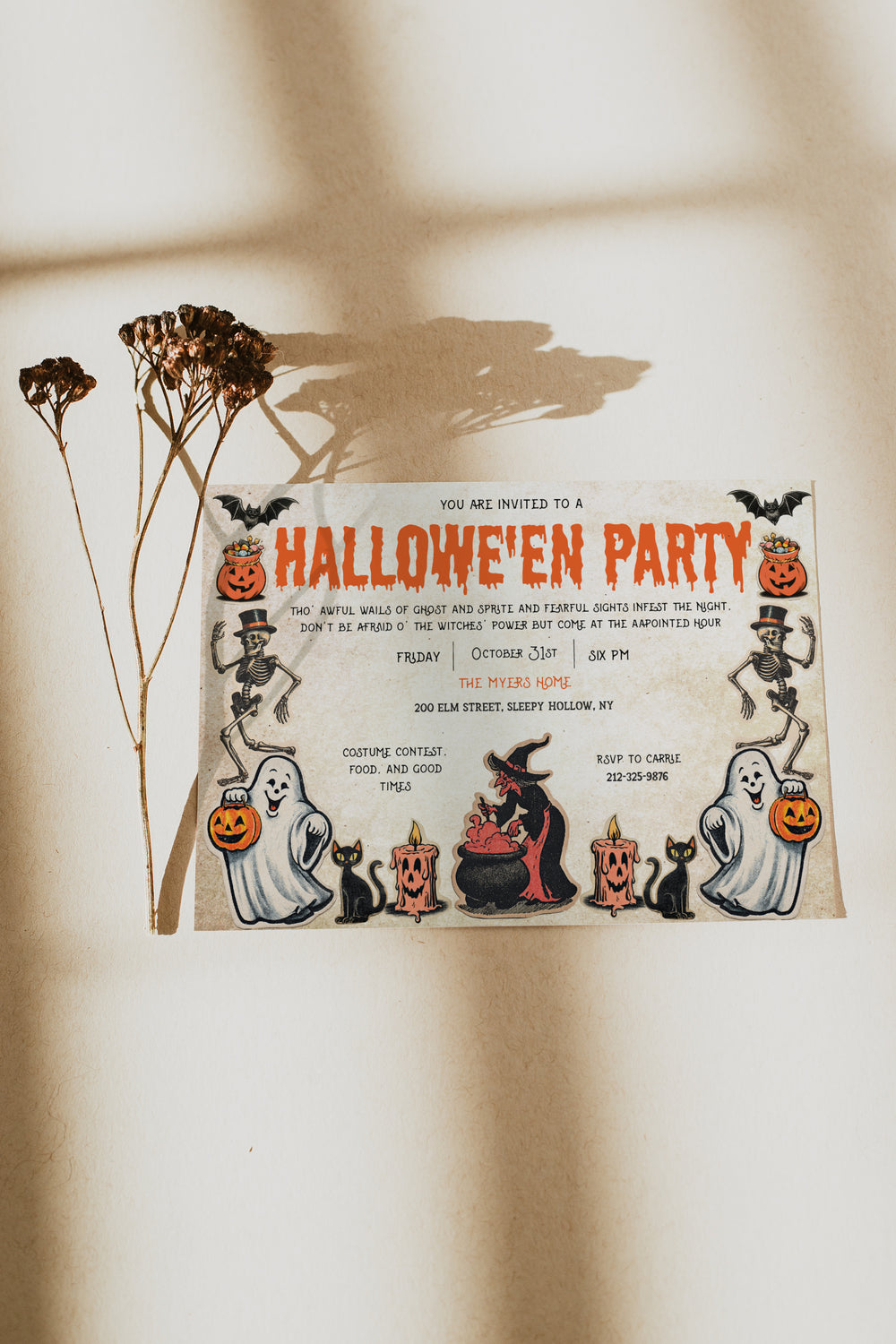 Vintage Halloween Invitation - Retro Halloween Party Invitation - 90s Halloween Party Invitation - Nostalgic Halloween Party Invitation