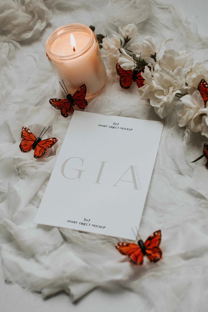 5x7 Boho Invitation Mockup - 5x7 Butterfly Invitation Mockup - Styled Invitation Mockup - Boho Invitation Mockup - Smart Object Boho Invitation Mockup - Instant Download Invitation Mockup