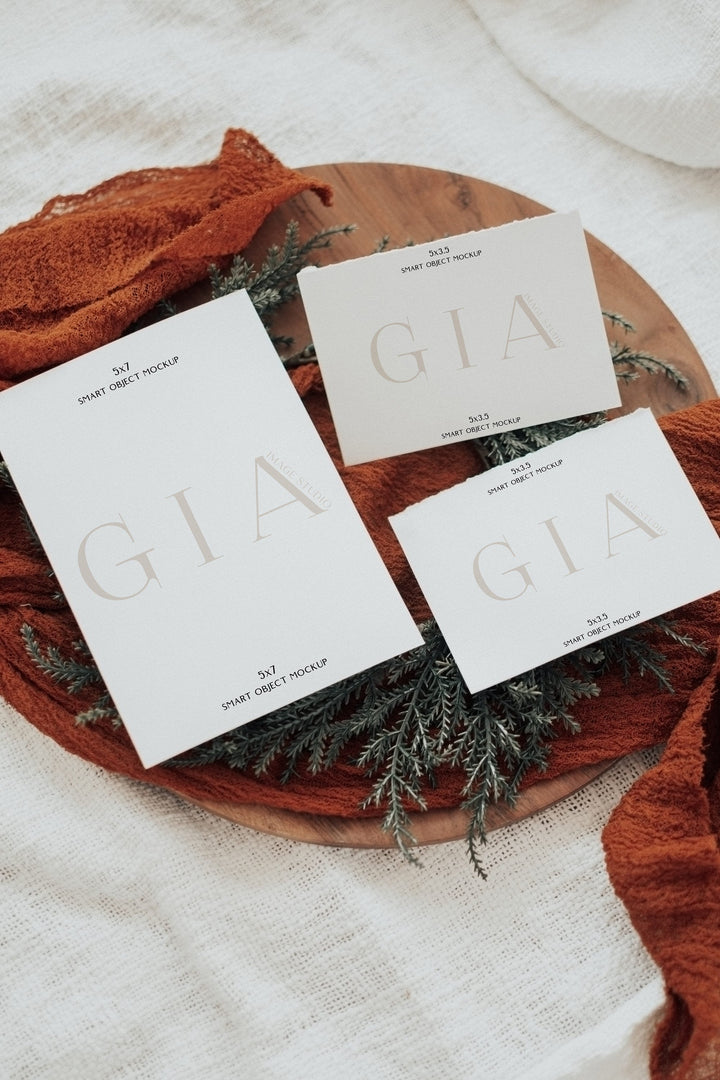 Boho Burnt Orange Invitation Suite Mockup - Moody Invitation Mockup - Smart Object Stationary Mockup Boho Aesthetic - Boho Card Mockup - PSD