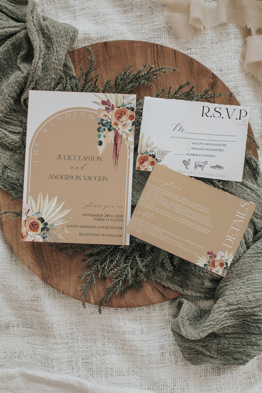 Boho Terracotta and Pampas Grass Wedding Invitation - Boho Palm Leaf Wedding Invitation - Arch Wedding Invitation Suite - Boho Wedding RSVP