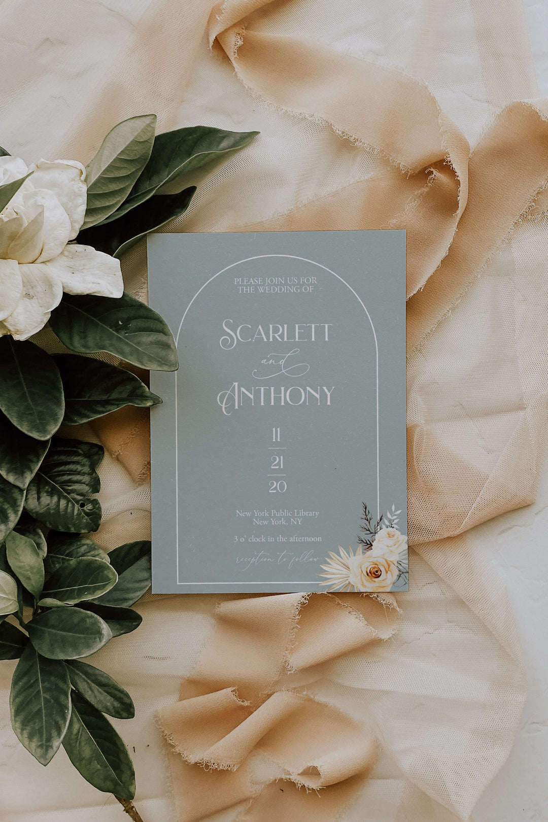 Dusty Blue and Sage Green Wedding Invitations - Minimalist Boho Wedding Invitation Suite - Modern Boho Sage Green Wedding Invitation Suite