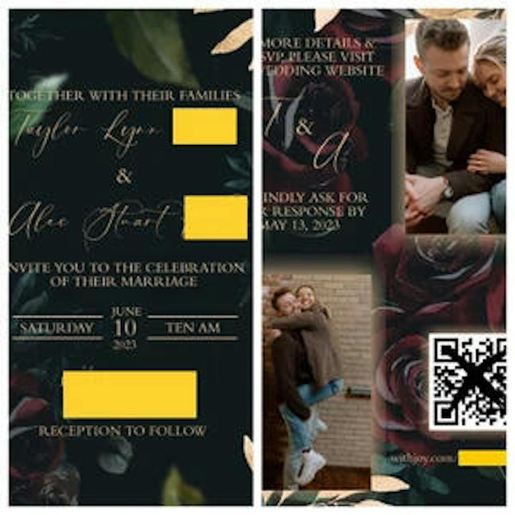 These invites are absolutely PERFECT. They got the vibe of my moody, jewel toned fall wedding so perfectly and I’ve gotten so many compliments on them from my guests! They were also so easy to edit and customize to my liking in regards to font and text color and adjusting the layout of the words. The recommended printing company Prints of Love did an incredible and super fast job printing them and shipping them! I could not recommend BrooklynPaperieCo enough!